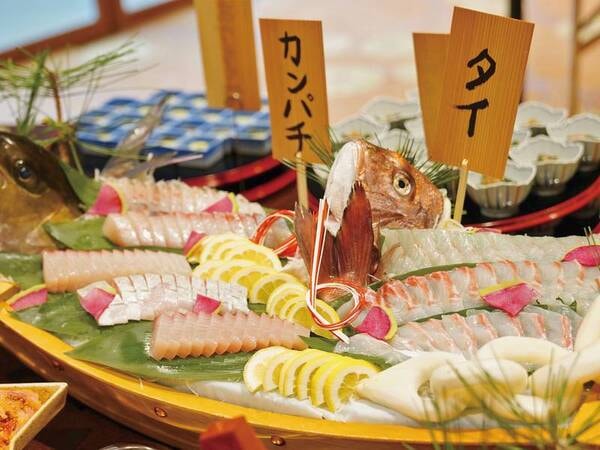 山陰まるごと「ごっつお」バイキング。鮮魚のお刺身がずらり