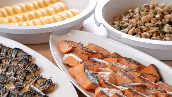【朝食バイキング/例】目の前で実演調理する「出汁巻き玉子」